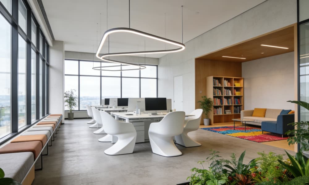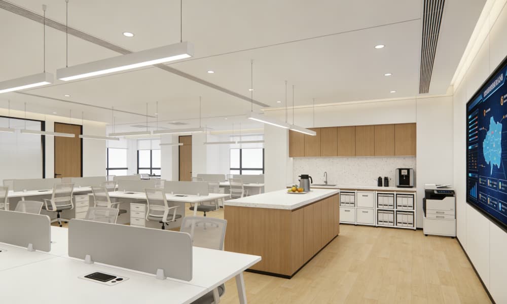 整體色調(diào)以白色、灰色為主,搭配少量黑色線條作為點(diǎn)綴,營(yíng)造出簡(jiǎn)潔大氣的視覺效果。材料運(yùn)用上,注重質(zhì)感與耐用性,采用玻璃、金屬、石材等現(xiàn)代材質(zhì),彰顯工業(yè)場(chǎng)所的專業(yè)性與品質(zhì)感。在空間設(shè)計(jì)中,強(qiáng)調(diào)開放性與通透感,讓自然光線充分滲透,提高空間的舒適度與工作效率。