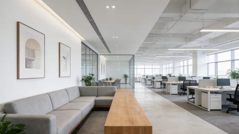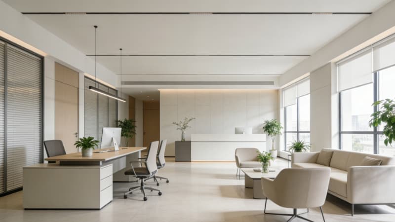 本項目為4000㎡現(xiàn)代簡約風格辦公空間,整體以簡潔線條、低飽和度色調(diào)與通透布局打造高效、舒適、大氣的辦公環(huán)境。大樓外觀簡約大氣,凸顯企業(yè)形象;大堂開闊明亮,質(zhì)感材質(zhì)與簡約造型相得益彰;待客廳雅致靜謐,兼顧接待功能與商務格調(diào);電梯間整潔統(tǒng)一,提升通行體驗。開放式辦公區(qū)分區(qū)合理,采光充足,兼顧協(xié)作與私密性,滿足不同團隊辦公需求;經(jīng)理辦公室與總裁辦公室沉穩(wěn)大氣,功能齊全,在簡約中彰顯品質(zhì)與格局。項目從外觀到室內(nèi)空間一脈相承,統(tǒng)一現(xiàn)代簡約設計語言,注重實用性、舒適性與美學感,打造集辦公、接待、洽談于一體的現(xiàn)代化商務空間,助力企業(yè)提升形象與辦公效率。