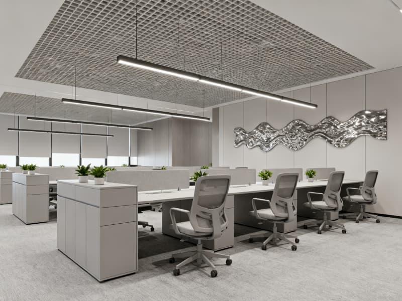 此外,設(shè)計注重人性化與科技感,采用人體工學(xué)家具、智能感應(yīng)設(shè)備、無線充電模塊等,提升員工辦公舒適度與工作效率,同時兼顧空間的安全性與整潔性,為企業(yè)打造一個適合長期發(fā)展的優(yōu)質(zhì)辦公環(huán)境。