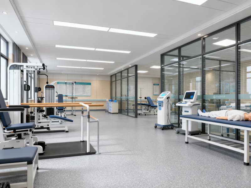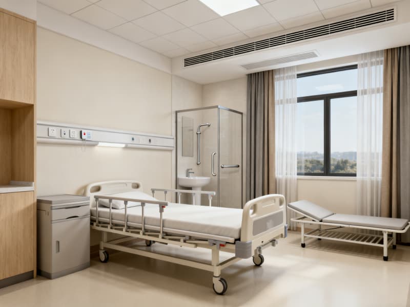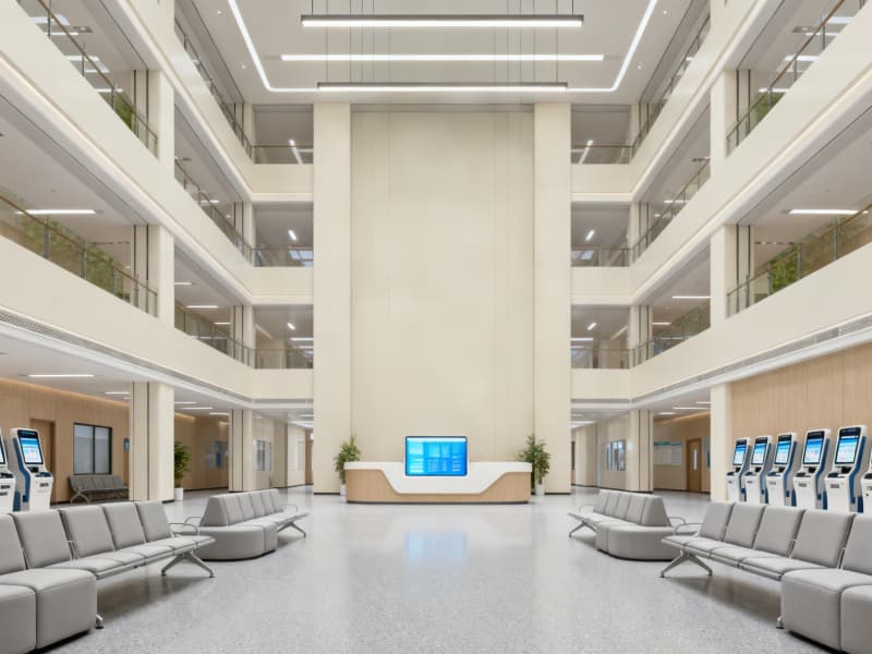 同時,通過三大核心設(shè)計傳遞療愈感:①色調(diào)上以米白、淺灰、原木色為主,搭配藍色點綴,避免冰冷刺激;②材質(zhì)上選用醫(yī)用級環(huán)保、防污、防滑材料,兼顧安全與舒適;③元素上融入自然綠植、柔和燈光、圓角設(shè)計等,緩解患者就醫(yī)焦慮。?