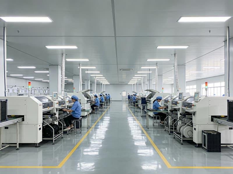 步入內(nèi)部,生產(chǎn)區(qū)空間寬敞,為保證生產(chǎn)操作的精準度與高效性,采用無柱式大空間設(shè)計。頂部配備先進的照明系統(tǒng),光線均勻柔和,滿足各類電子生產(chǎn)工序?qū)φ彰鞯膰栏褚?。地面選用防靜電、耐磨的環(huán)氧樹脂地坪,確保電子產(chǎn)品生產(chǎn)環(huán)境的穩(wěn)定性。