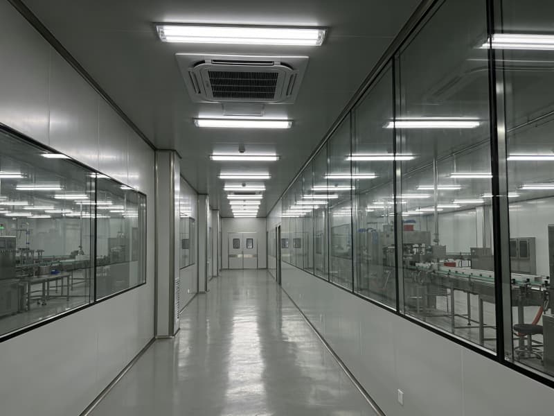 走進內(nèi)部,生產(chǎn)區(qū)按照嚴(yán)格的GMP標(biāo)準(zhǔn)設(shè)計。地面采用無縫、耐腐蝕的環(huán)氧自流平,墻壁選用光潔、抗菌的金屬板,便于清潔與消毒。頂部的凈化空調(diào)系統(tǒng)與照明設(shè)備一體化設(shè)計,保證生產(chǎn)環(huán)境的潔凈與適宜光照。不同生產(chǎn)工序區(qū)域通過透明玻璃隔斷劃分,既保證空間通透,又防止交叉污染。
