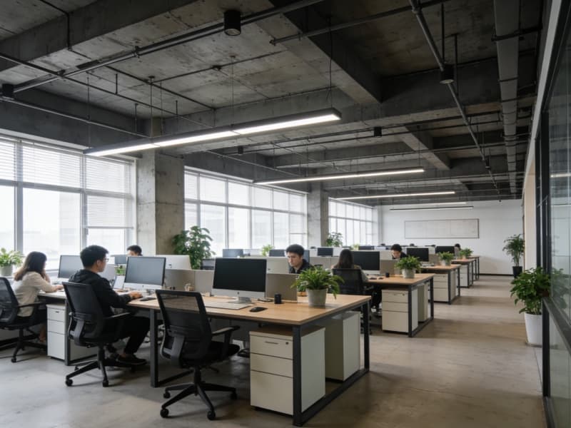 辦公區(qū)域以簡潔實用為主,采用開放式與獨立辦公室相結(jié)合的布局。開放式辦公區(qū)的辦公桌排列整齊,員工之間溝通便捷。獨立辦公室則為管理人員提供安靜的工作環(huán)境。辦公家具選用簡約現(xiàn)代風(fēng)格,搭配綠植,營造舒適的辦公氛圍。