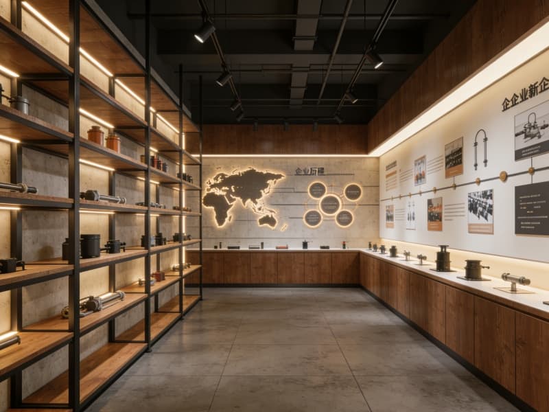 成品展示區(qū)的設(shè)計別出心裁,運用木質(zhì)與金屬組合的展示架,通過燈光的巧妙布置,突出產(chǎn)品特點。背景墻采用藝術(shù)化的設(shè)計,展示企業(yè)發(fā)展歷程與產(chǎn)品理念,為展示區(qū)增添文化氛圍。