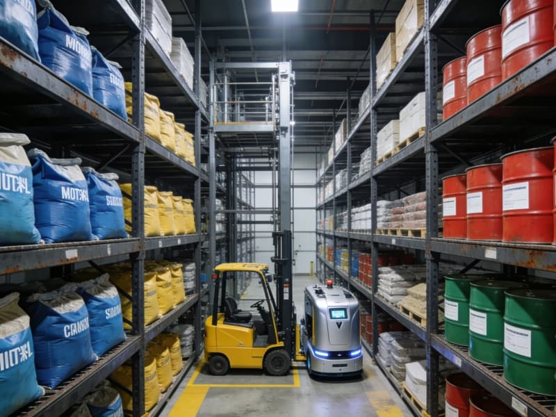 原料存儲區(qū)采用多層金屬貨架,實現(xiàn)空間的最大化利用。不同類型的原料分區(qū)明確,標(biāo)識清晰,方便管理與取用。同時,配備先進(jìn)的搬運設(shè)備,提高貨物搬運效率。