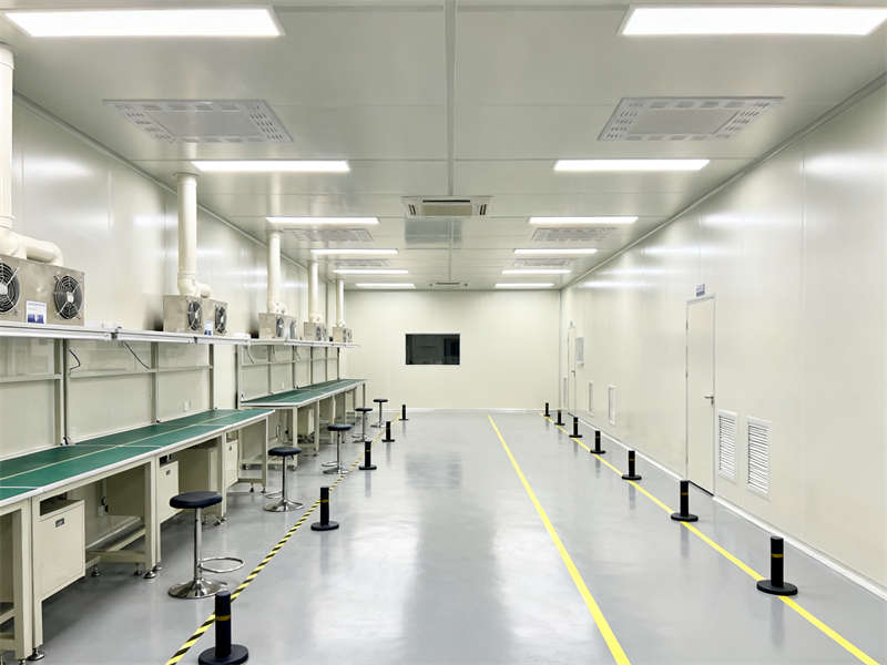 室內(nèi)裝修延續(xù)了外觀的設(shè)計(jì)語(yǔ)言,以淺灰、米白為基礎(chǔ)色調(diào),搭配深灰金屬線條點(diǎn)綴,各區(qū)域材質(zhì)統(tǒng)一,地面均采用耐磨易清潔的環(huán)氧地坪,墻面根據(jù)不同功能需求選用潔凈板或工業(yè)風(fēng)涂料,確保整體視覺(jué)協(xié)調(diào)。無(wú)塵車間注重潔凈與開(kāi)闊,通過(guò)合理布局設(shè)備與通風(fēng)系統(tǒng),營(yíng)造出無(wú)粉塵、秩序井然的生產(chǎn)環(huán)境;實(shí)驗(yàn)室則突出精準(zhǔn)專業(yè),實(shí)驗(yàn)臺(tái)、通風(fēng)櫥等設(shè)施規(guī)劃合理,滿足各類實(shí)驗(yàn)操作需求。?