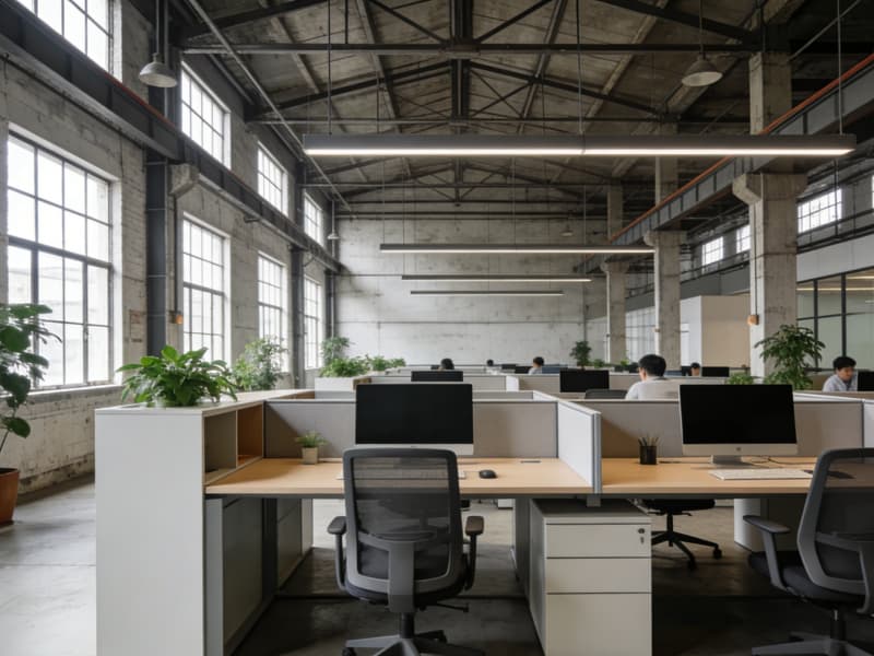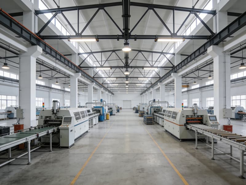 走進廠房內(nèi)部,生產(chǎn)區(qū)域空間開闊,挑高的設計為大型生產(chǎn)設備提供了充足的安置空間。頂部采用裸露的鋼結(jié)構(gòu)桁架,搭配軌道式照明燈具,既滿足了生產(chǎn)作業(yè)對照明的需求,又強化了工業(yè)氛圍。地面鋪設耐磨的水泥自流平,堅固耐用且便于清潔,符合工業(yè)生產(chǎn)的實際要求。生產(chǎn)設備按照工藝流程有序排列,各區(qū)域之間設置了寬敞的運輸通道,確保物流運輸?shù)捻槙掣咝А?br />