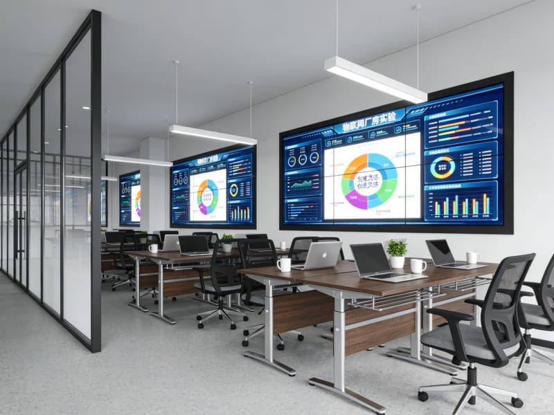 研發(fā)區(qū)充滿靈動(dòng)氣息,開放式的辦公空間搭配可移動(dòng)的玻璃隔斷,方便團(tuán)隊(duì)靈活協(xié)作。桌椅選用符合人體工學(xué)的款式,搭配智能升降系統(tǒng)。墻面設(shè)置電子展示屏,實(shí)時(shí)展示項(xiàng)目進(jìn)度與創(chuàng)意靈感。